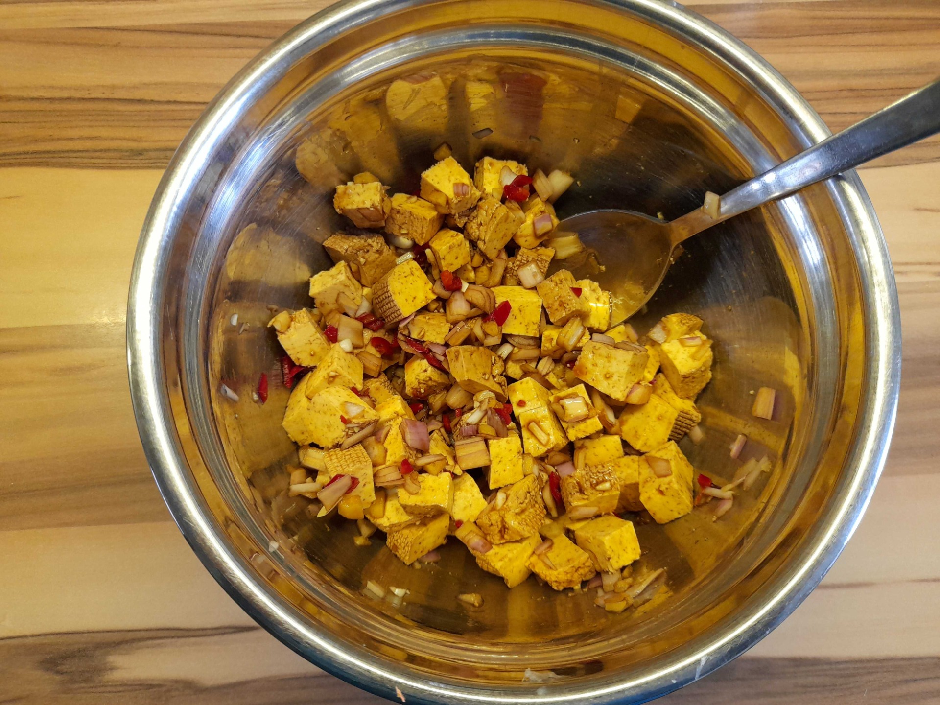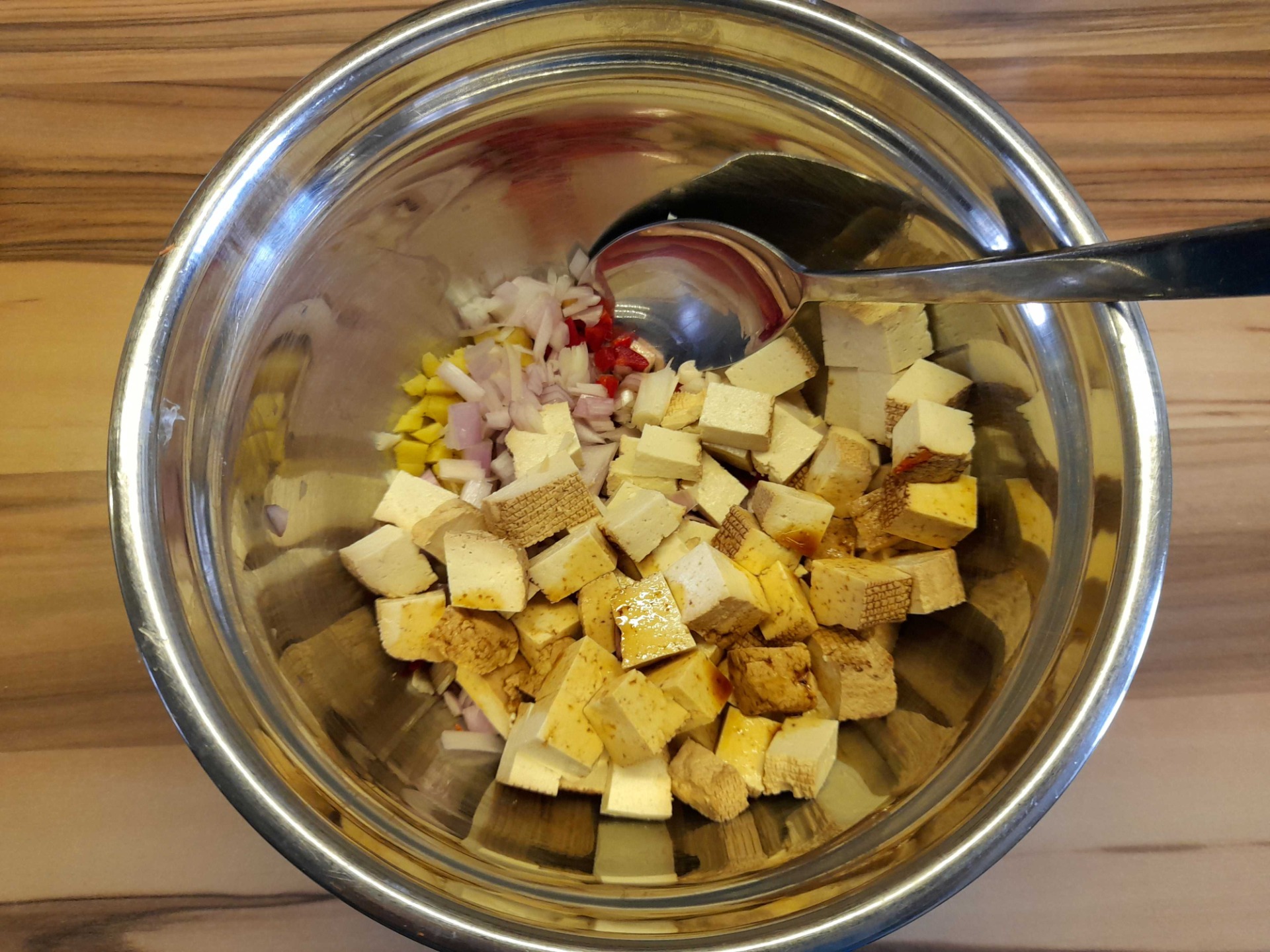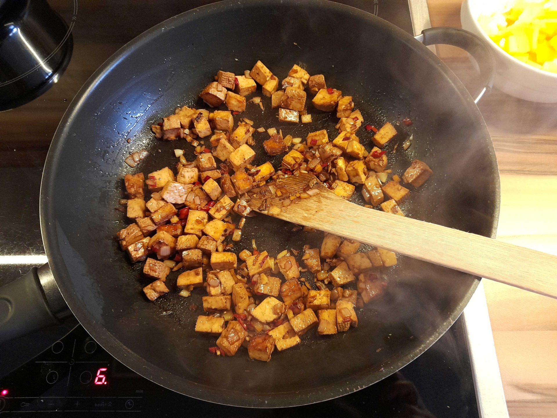 - 200 g uzeného tofu (nakrájeného na kostičky cca. 1 cm)