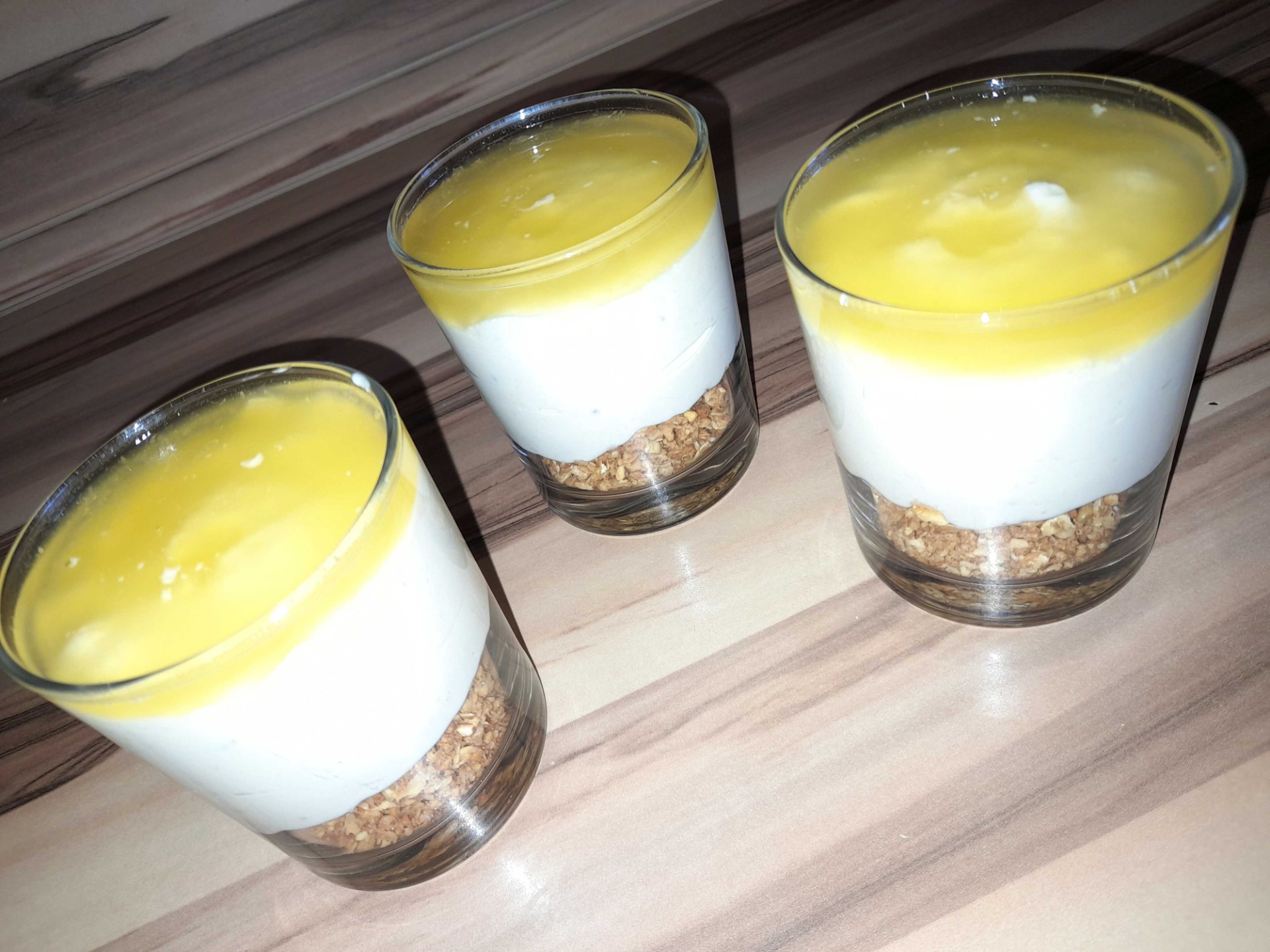 Připravíme si 3 pohárky či skleničky (250ml). Na dno vložíme 3 PL granoly, na to přidáme 4 PL krému (z lednice) a nakonec 3 PL citronového žele. Vše dáme do lednice ztuhnout. Klidně i na pár hodin, minimálně však na 30 minut!