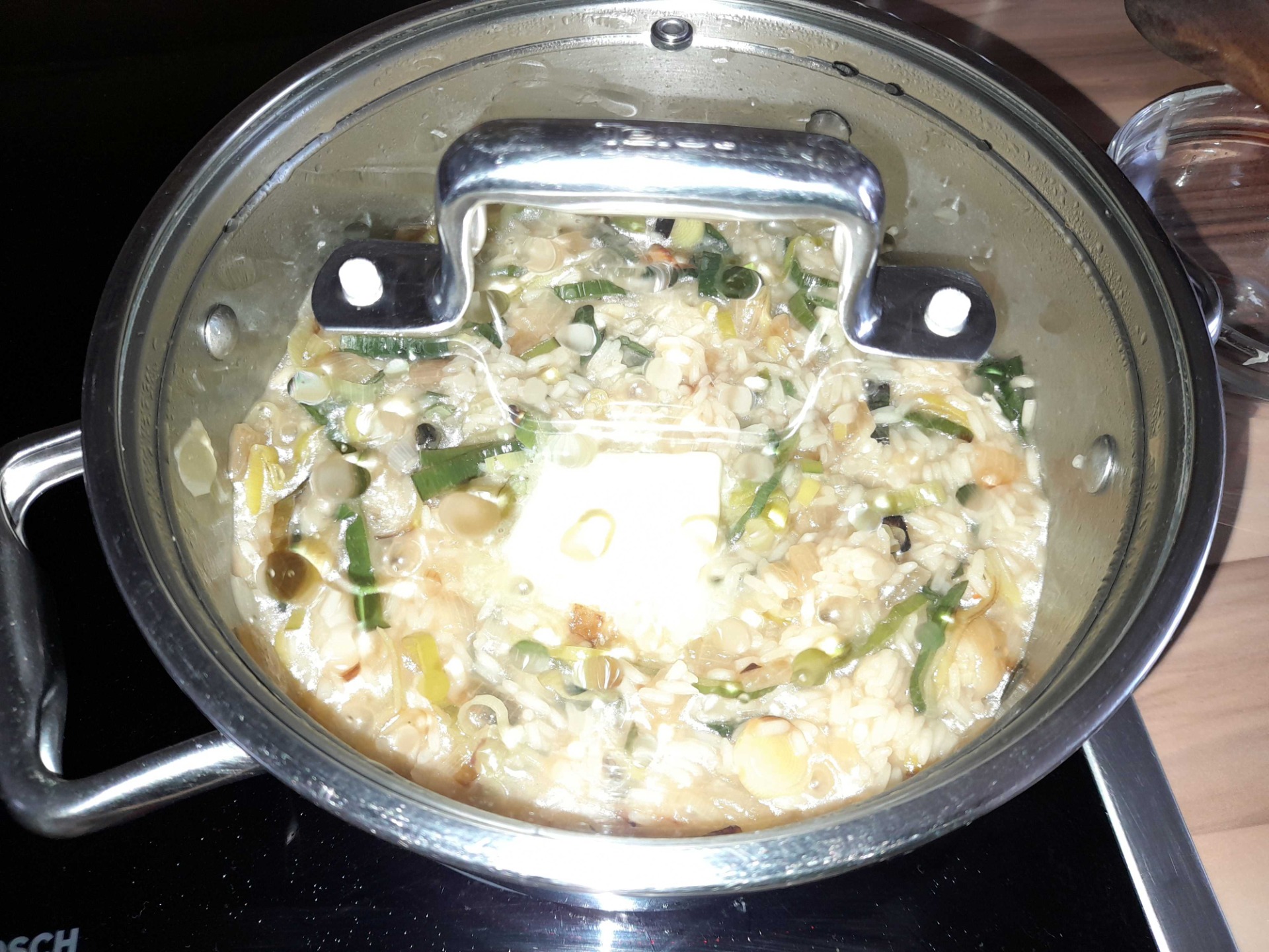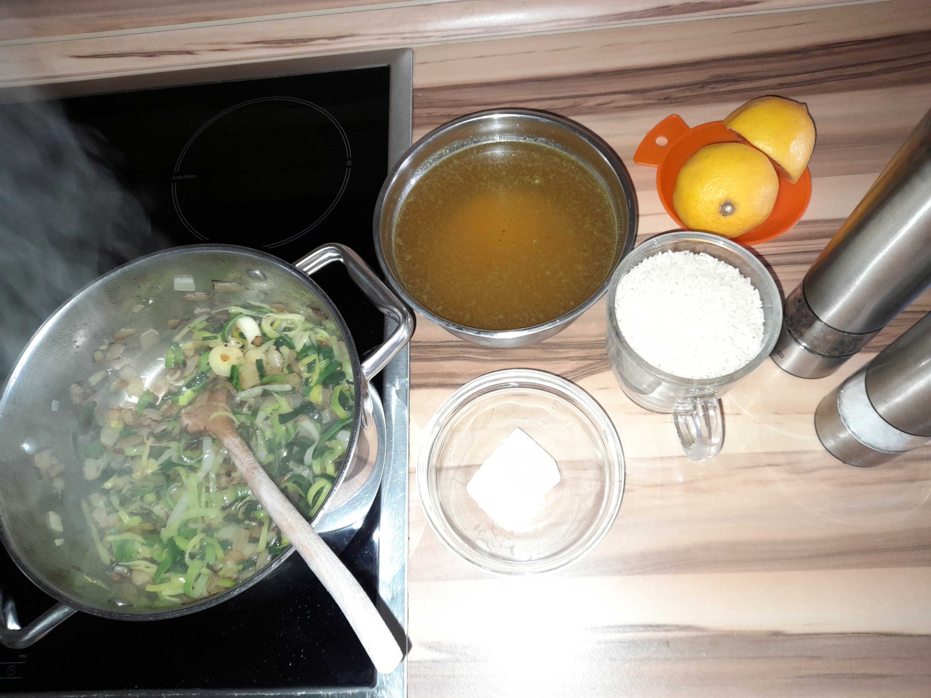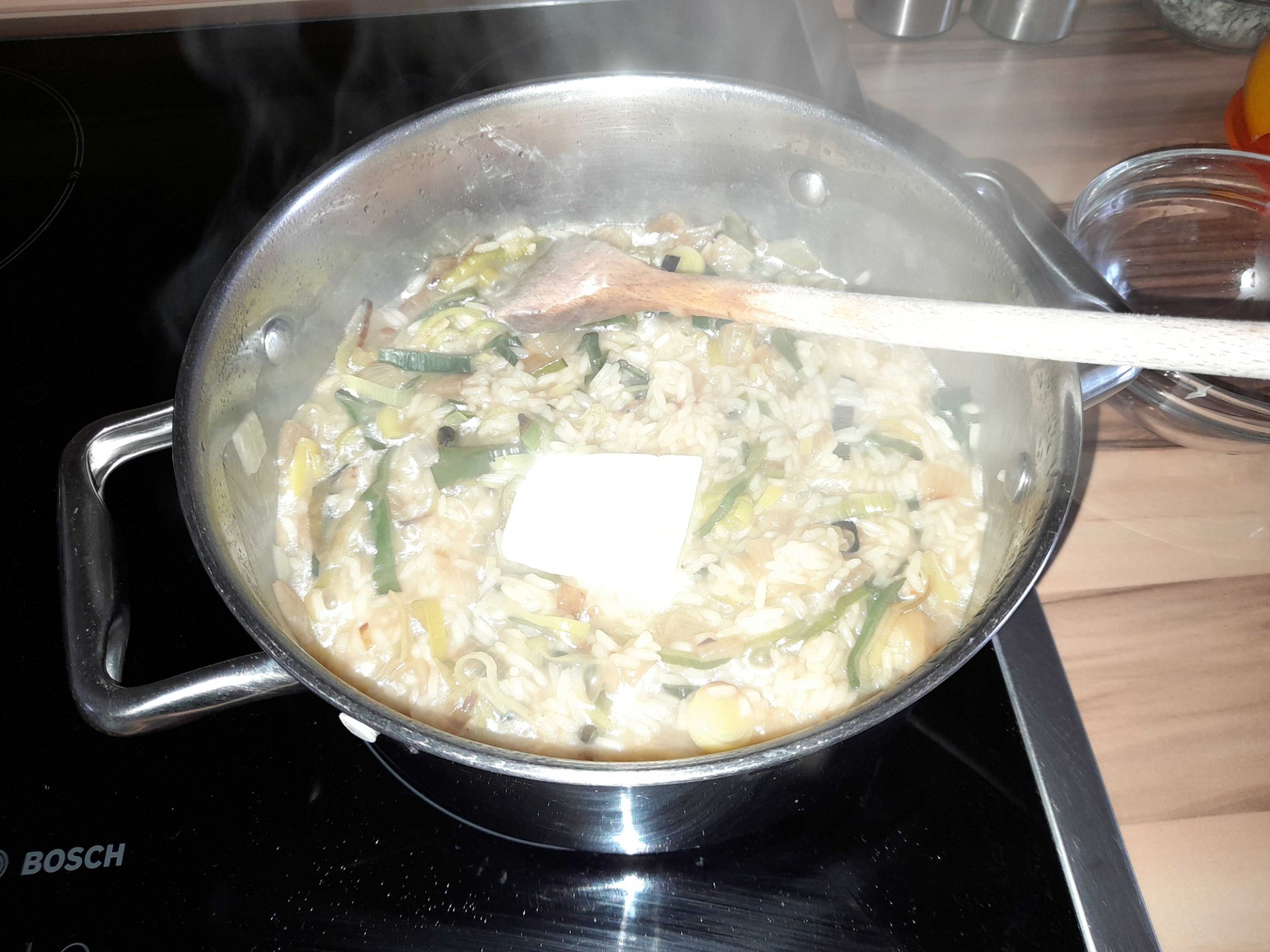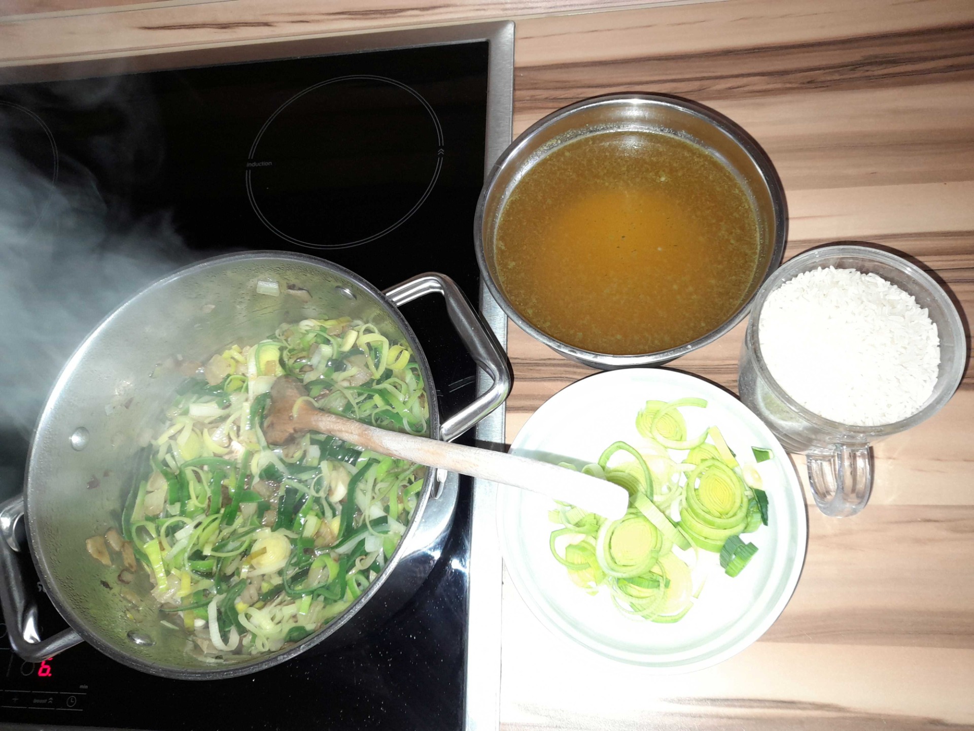 - 1 větší pórek (pokrájený na kolečka, 2/3 na rizoto)