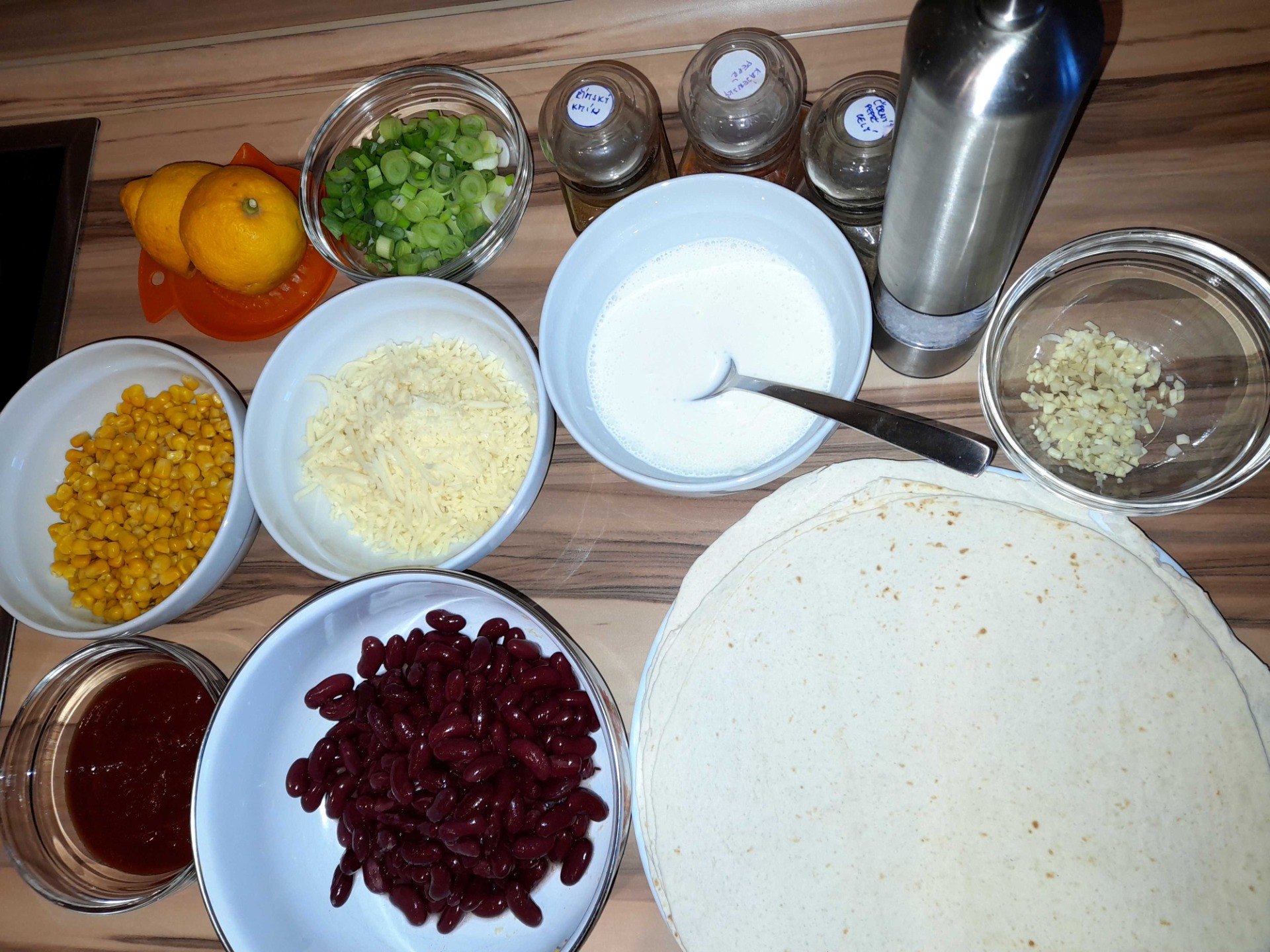 - 4 kukuřičné tortilly (nebo pšeničné, či celozrnné)