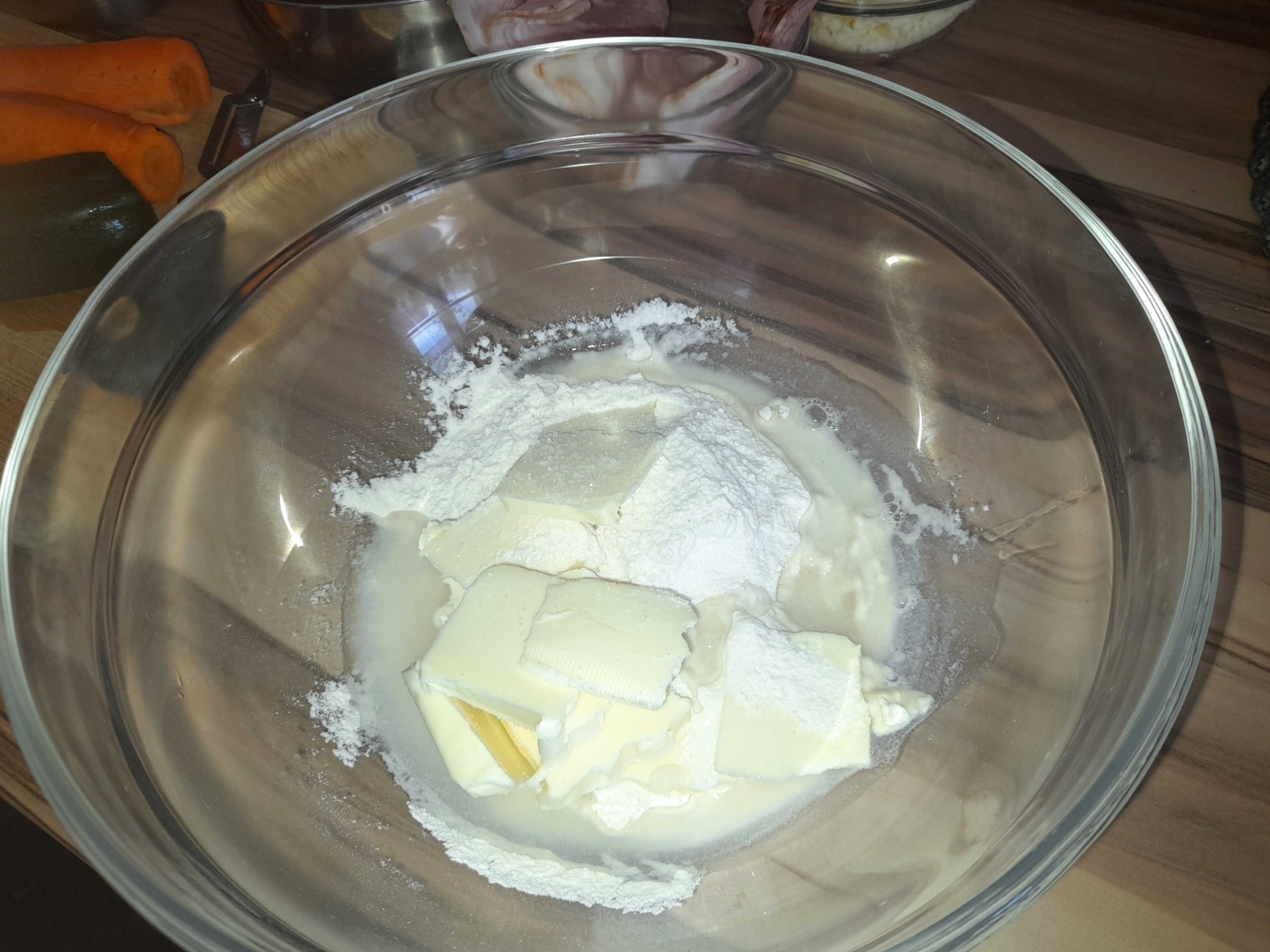 - 90 g studeného másla (nakrájeného na plátky)