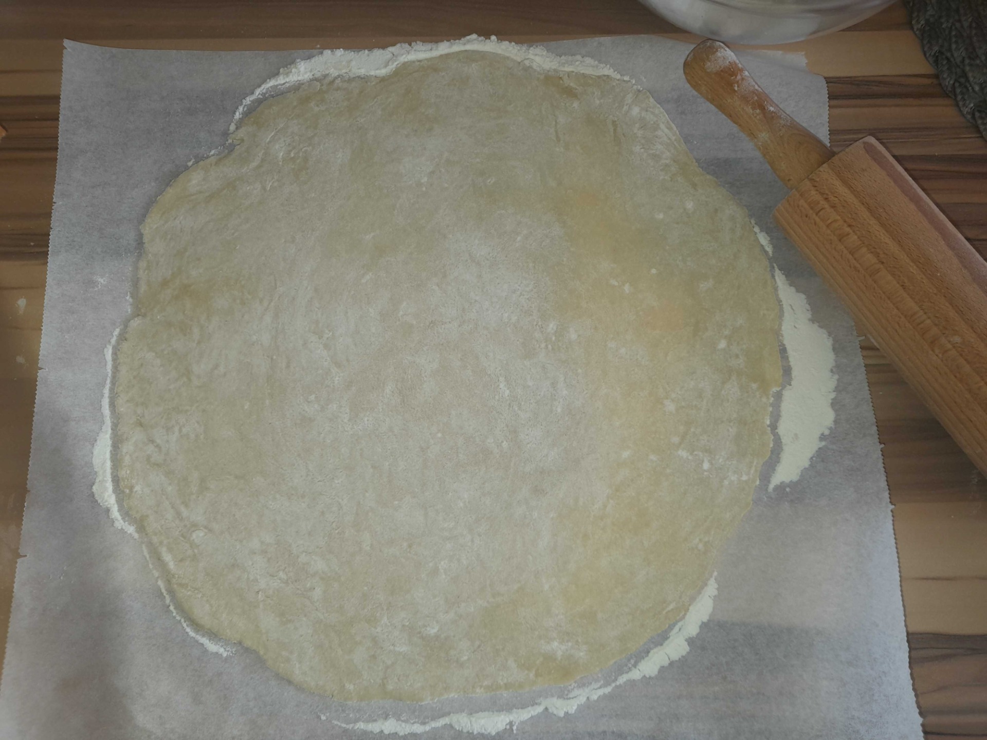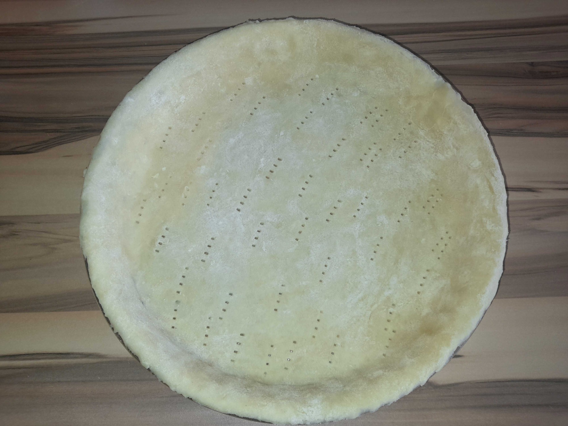 Nejprve si připravíme v misce těsto z mouky, másla, soli a vody. Důkladně prohněteme a vytvarujeme do tvaru pecnu. Z toho následně vytvoříme placku, kterou rozválíme na předem pomoučené pracovní desce do požadovaného průměru. Formu si nejprve vymažeme máslem a přeneseme do ní rozválený plát. Po okrajích dobře přtlačíme a přebytečné těsto ořízneme. Korpus na dně formy propícháme vidličkou a necháme cca. 10 min vychladit v lednici. Pak opět vyndáme a necháme cca. 5 min odstát při pokojové teplotě. Mezitím si troubu předehřejeme na 180 °C.