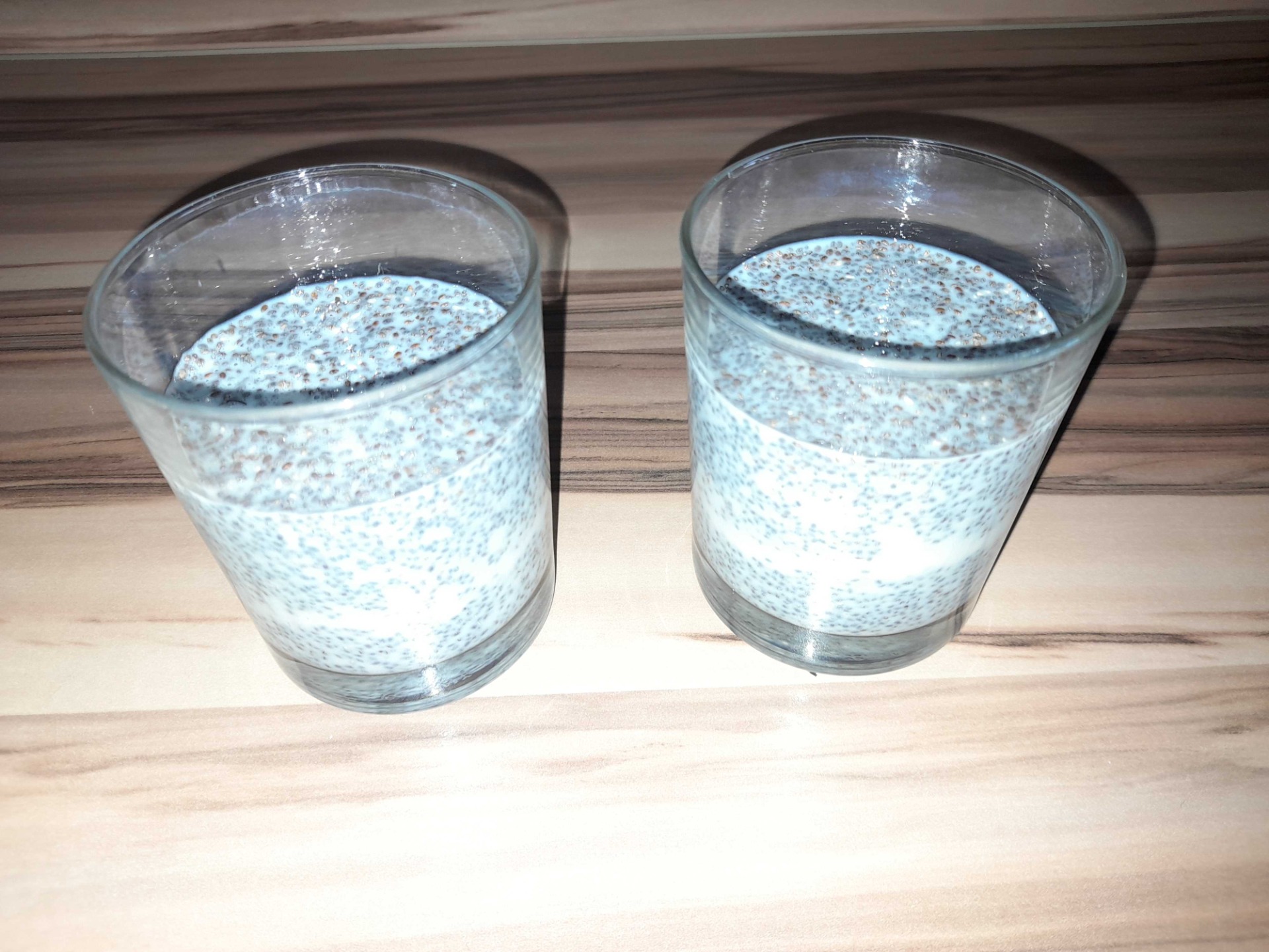 Skleničky vložíme do lednice, min. na 15 min. Semínka krásně nasáknou a vytvoří rosolovou směs podobnou želé či pudinku.