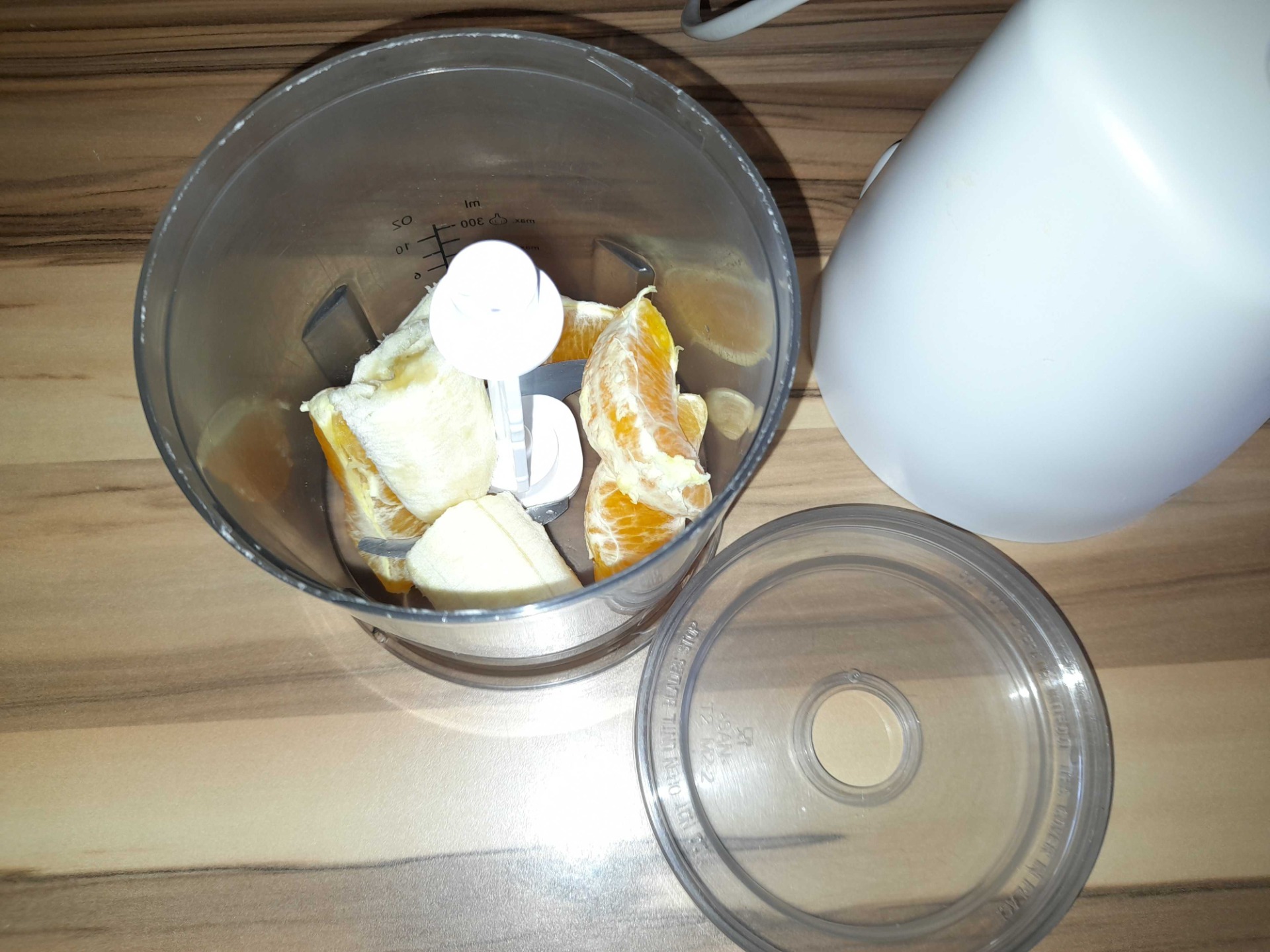 - 2 plátky pomeranče, 2 KL granolly či směs oříšků, příp. 2 kvítky fialek